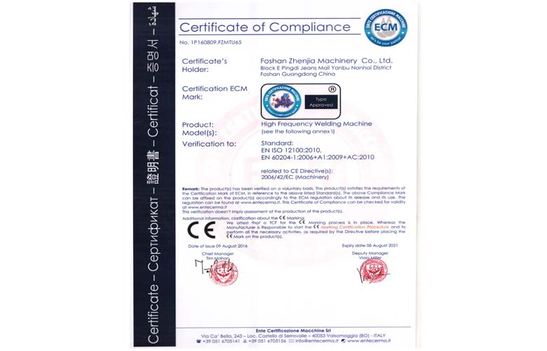 4、我司機器均有通過CE出口質(zhì)量認證。(證書圖如下)